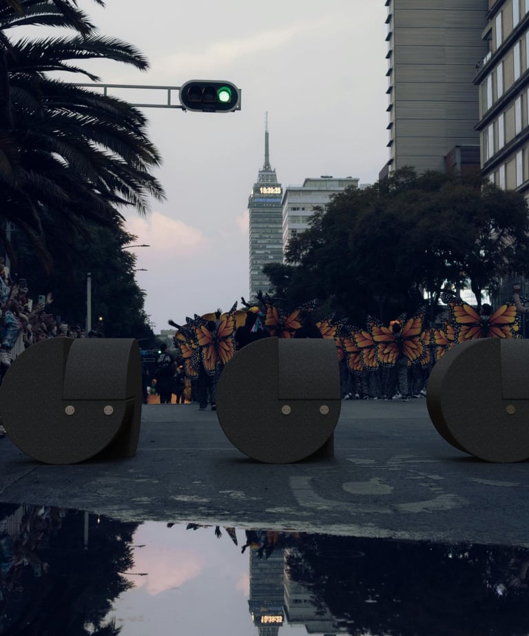 The road barriers were designed using sculptural forms that would replicate the tubular structure and maintain a common visual pattern with other objects being created. The road barriers use constructive solutions that ensure not only aesthetics, but also the functionality of the object.
